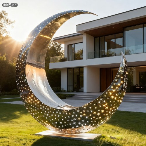 Stainless steel is chosen as the raw material for this moon sculpture because stainless steel is corrosion-resistant and high-temperature-resistant. In this way, stainless steel sculptures are very suitable for long-term outdoor display. And the surface of stainless steel is very easy to clean. Therefore, stainless steel sculptures are easy to keep beautiful. So in many modern outdoor places, stainless steel abstract sculptures are a good choice for decoration.