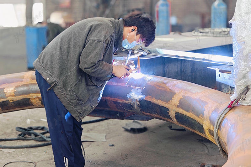 Before shipping the sculpture, we conducted a full installation test at our factory. This allowed the client’s representative to verify every detail in person—from the surface finish and structural integrity to the alignment of each piece.