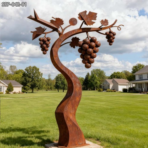 We can make different grape tree shapes, simple or detailed. You can also choose a modern style or a more natural style. Besides corten steel, the sculpture can be made in stainless steel, bronze, or fiberglass. The size can be small for a private garden or very large for a public park or commercial area. Our factory can follow your ideas and create a unique artwork for your space.
