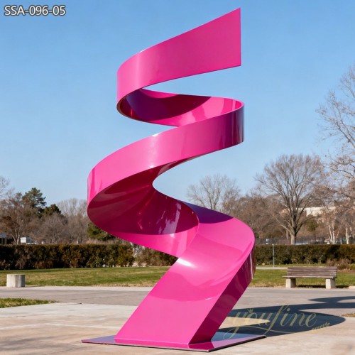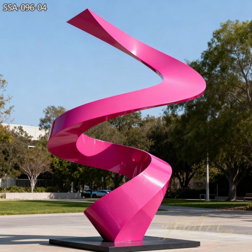 This custom stainless steel sculpture is designed with a sleek, modern abstract style, finished in vibrant pink automotive paint. Its smooth mirror-like surface and striking color make it a perfect focal point for plazas, gardens, commercial spaces, or private villas.