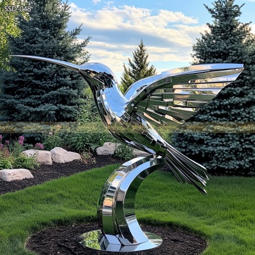 This stunning metal hummingbird sculpture captures the grace and beauty of nature in a sleek, modern form. The sculpture’s delicate wings balance in flight, conveying a sense of movement and dynamism, showcasing the bird’s unique shape through intricate detailing. The highly polished stainless steel surface reflects light, creating a shimmering effect that enhances its presence in any space. Whether you prefer a realistic depiction of a hummingbird or an abstract interpretation with dynamic curves and flowing lines, this sculpture will add a touch of elegance and charm to any environment.