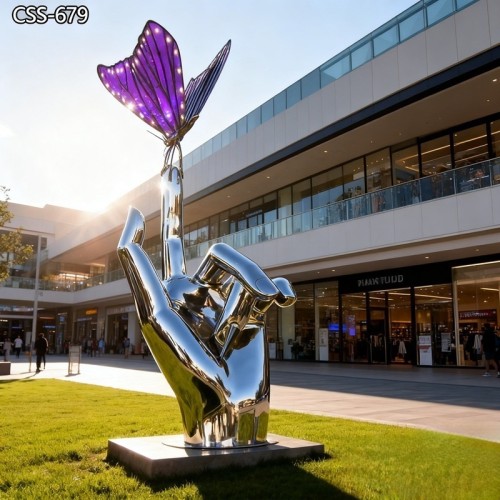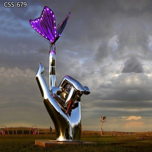 This is a dramatic Giant Hand Sculpture, with mirror polished exteriors lifelike butterflies, and other details that make up a story scene. It seems to tell people that in order to attract the butterfly’s short stay, the owner of this hand is willing to endure the pain of the wooden thorn on the hand, and also appreciate the beauty of the butterfly. This shows a kind of pursuit of beauty and a feeling of self-discipline for what you like. Such sculptures could fill up the story of your place and make your place more charming.