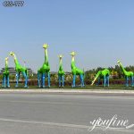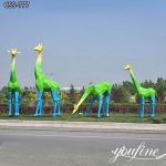 This is a group of sculptures showing metal giraffe yard art. Its color is very beautiful, it is a combination of yellow, green and blue. When such a sculpture is placed outdoors, it would be a beautiful landscape and attract people’s attention. Whether it is a roadside, square, garden, shopping mall, zoo or other modern outdoor places, it would be a good choice.