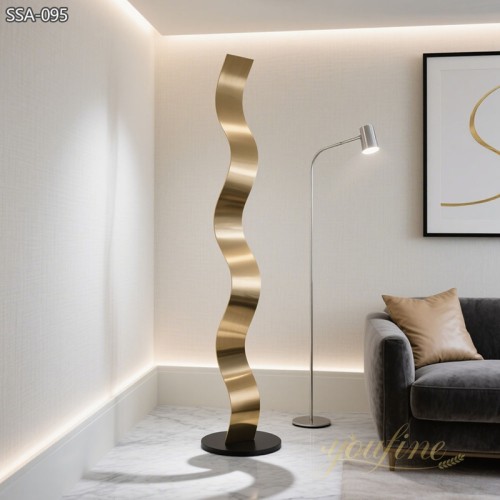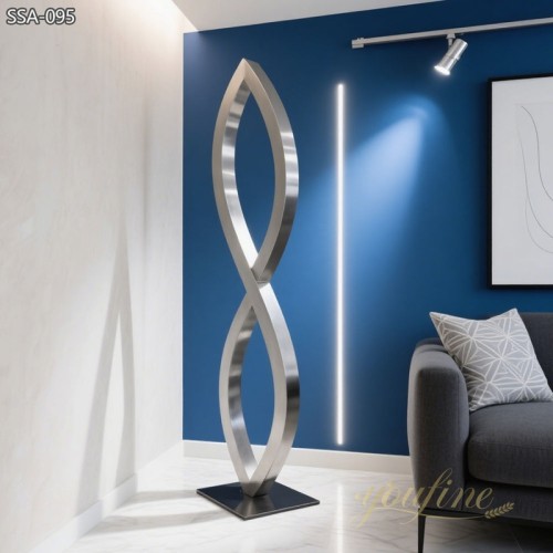 Made from high-quality stainless steel, these floor standing metal sculptures are long-lasting and safe for indoor use. The material does not rust and is easy to clean. Stainless steel also allows smooth curves and bold shapes, making the design stand out.