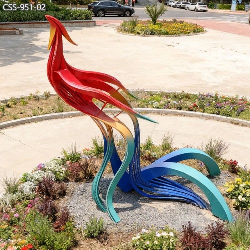 This phoenix sculpture is a modern and artistic outdoor decoration that represents rebirth, strength, and hope. The sculpture shows the phoenix spreading its wings gracefully, with flowing lines and elegant curves. It is perfect for installation in city squares, parks, gardens, or luxury villas, adding a strong artistic and symbolic touch to any space.