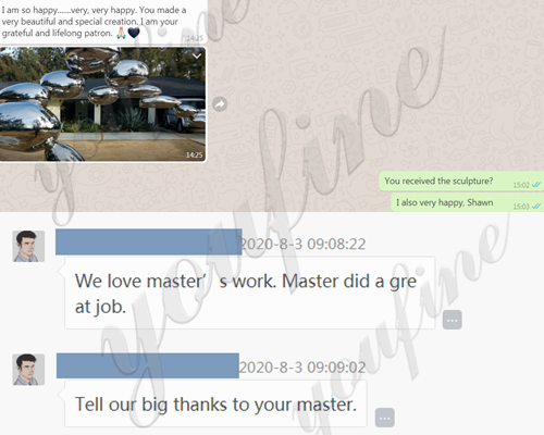 YouFine has specialized in metal sculpture for 39 years. Our stainless steel metal sculptures are exported all over the world. Such as Europe, America, Southeast Asia, Oceania and other regions. Many of our customers would choose to buy again because of the top quality and sincere service. We have a lot of beautiful real feedback from our customers.